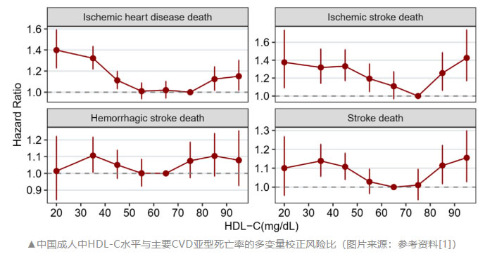 結(jié)果顯示,低HDL-C和高HDL-C均與死亡風(fēng)險增加相關(guān)。該研究推薦50 mg/dL~79 mg/dL作為中國成人HDL-C的最佳范圍。正確管理低HDL-C和高HDL-C,可給血脂異常患者帶來獲益。論文指出:“該研究是第一個在近340萬中國成人中全面評估HDL-C與全因死亡率和病因特異性死亡率之間關(guān)系的研究”。